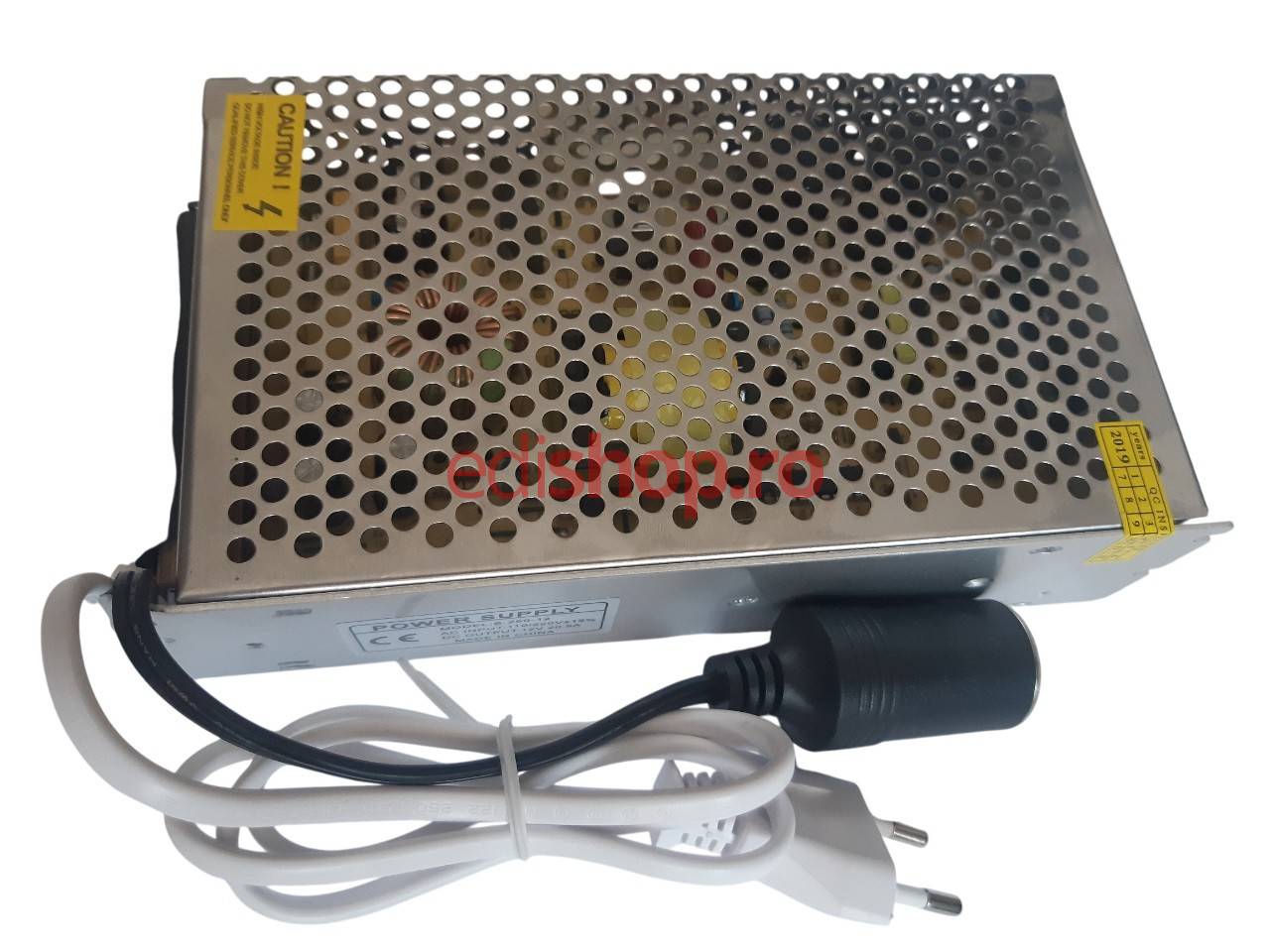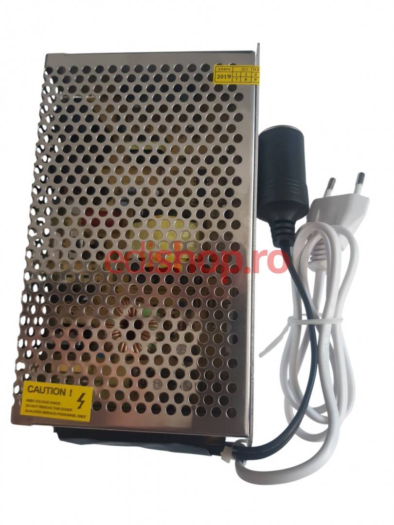 Tensiune iesire: 12V DC, reglabila 11V - 13V DC, cu MUFA BRICHETA AUTO tip mama