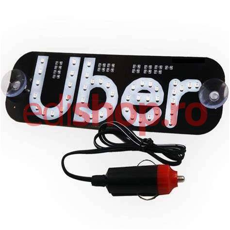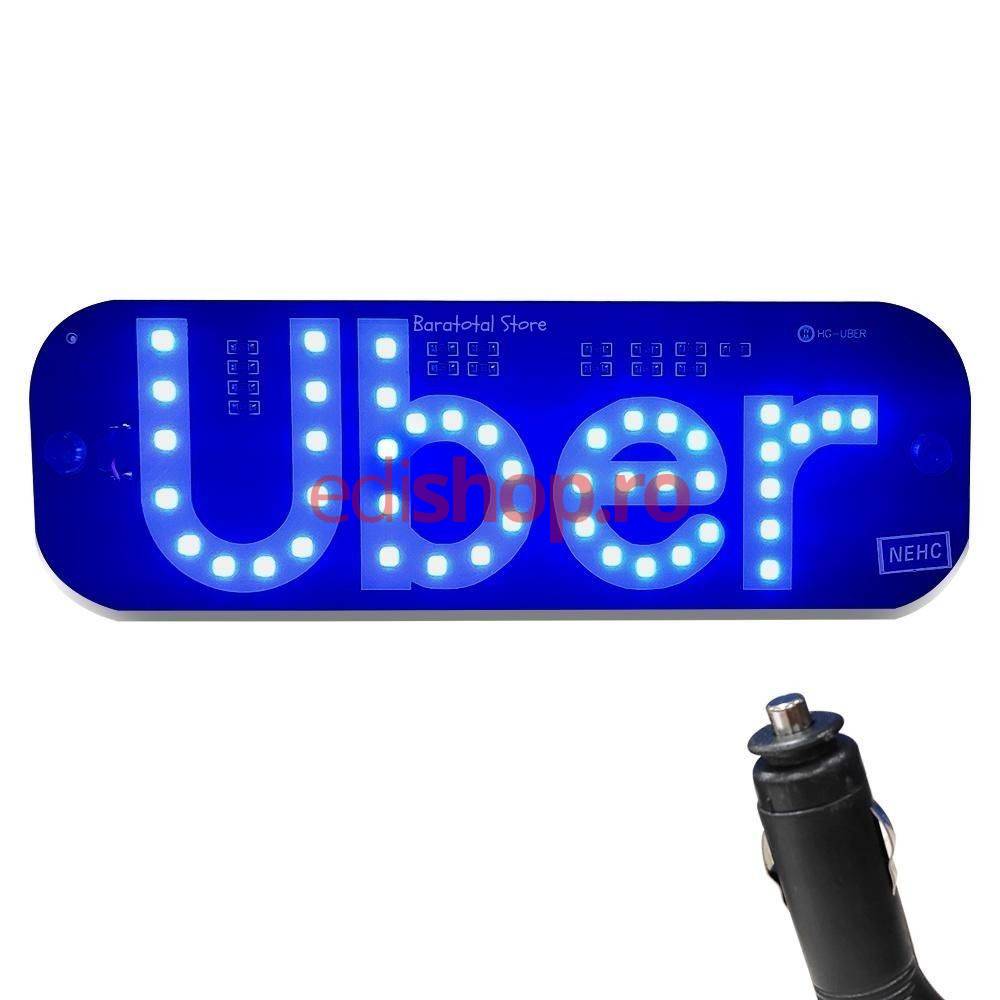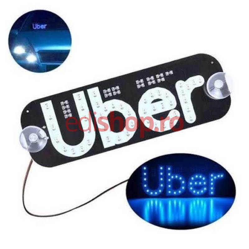 Afisaj luminos LED cu textul UBER, fixare rapida pe geamul masinii, cu alimentare la bricheta auto 12V sau la USB.
