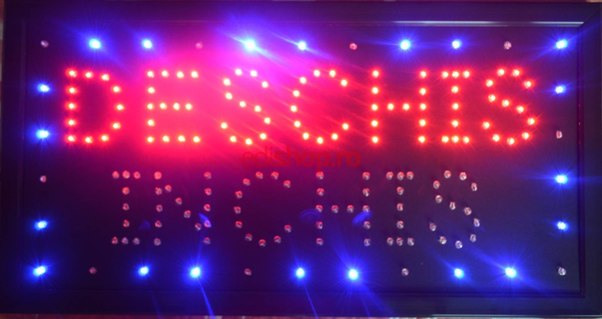 Reclama luminoasa dinamica cu efect de animatie prin aprinderea succesiva a ledurilor de pe margine.